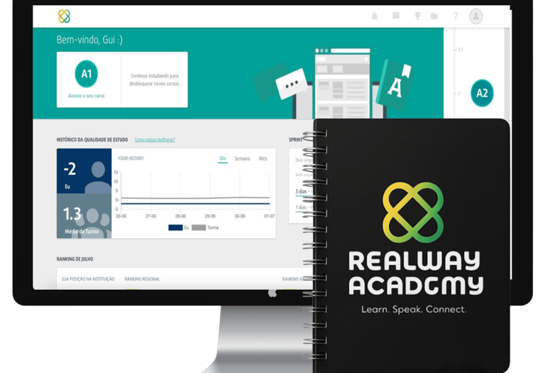 Você entra na plataforma e começa pela sua fase ideal (Pre-A1, A1…).